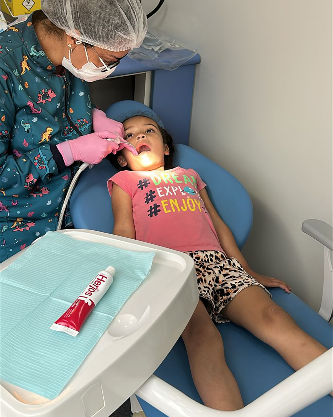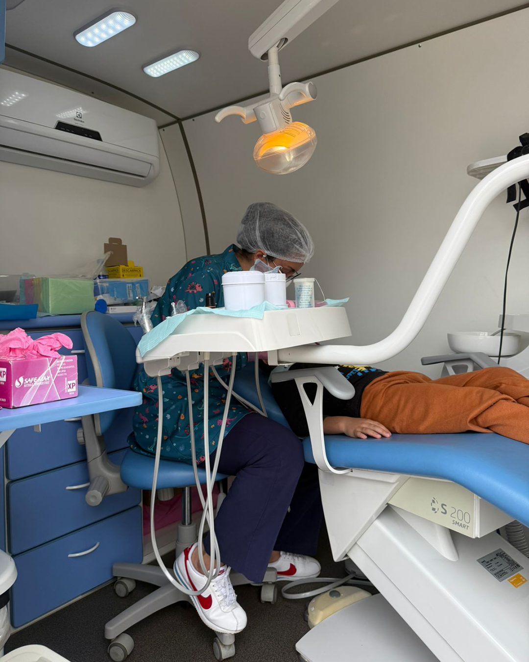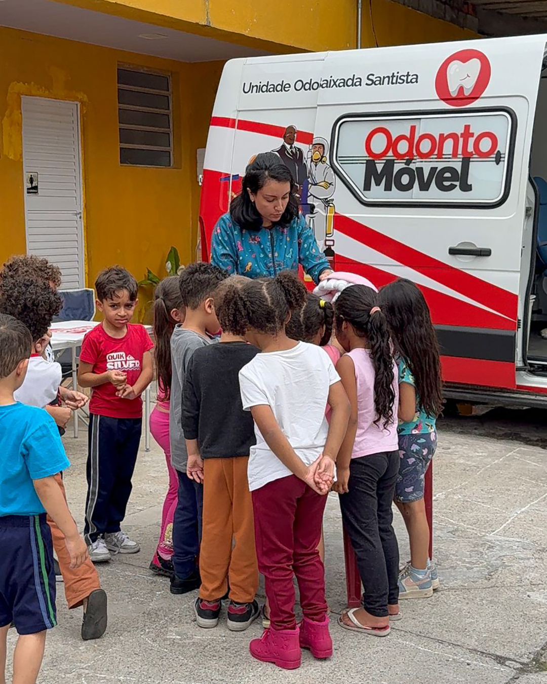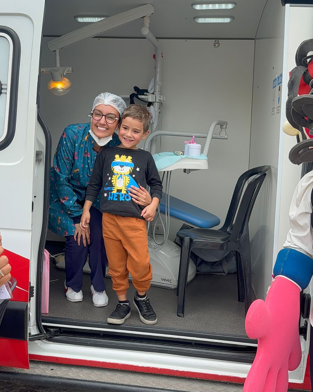 Durante o dia, dezenas de crianças foram atendidas na unidade móvel e, juntamente com as mães, receberam orientações, de forma lúdica, sobre a importância da prevenção e dos cuidados com a saúde bucal.
