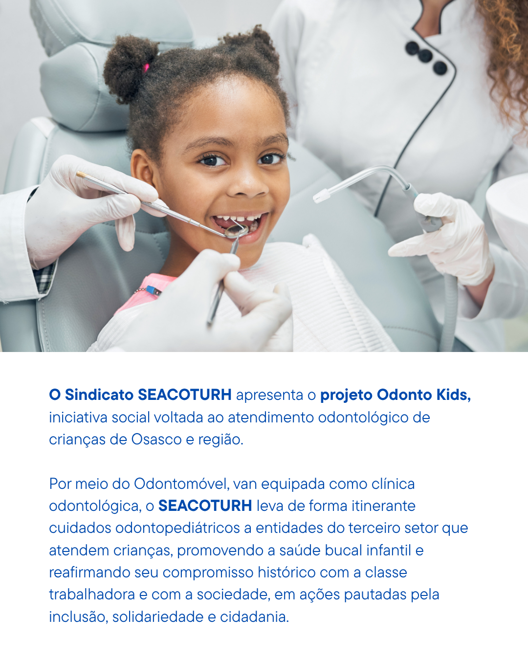 O SEACOTURH lança, nesta quinta-feira (13/11), o projeto “SEACOTURH Odonto Kids”, iniciativa social voltada ao atendimento odontológico de crianças de Osasco e região.