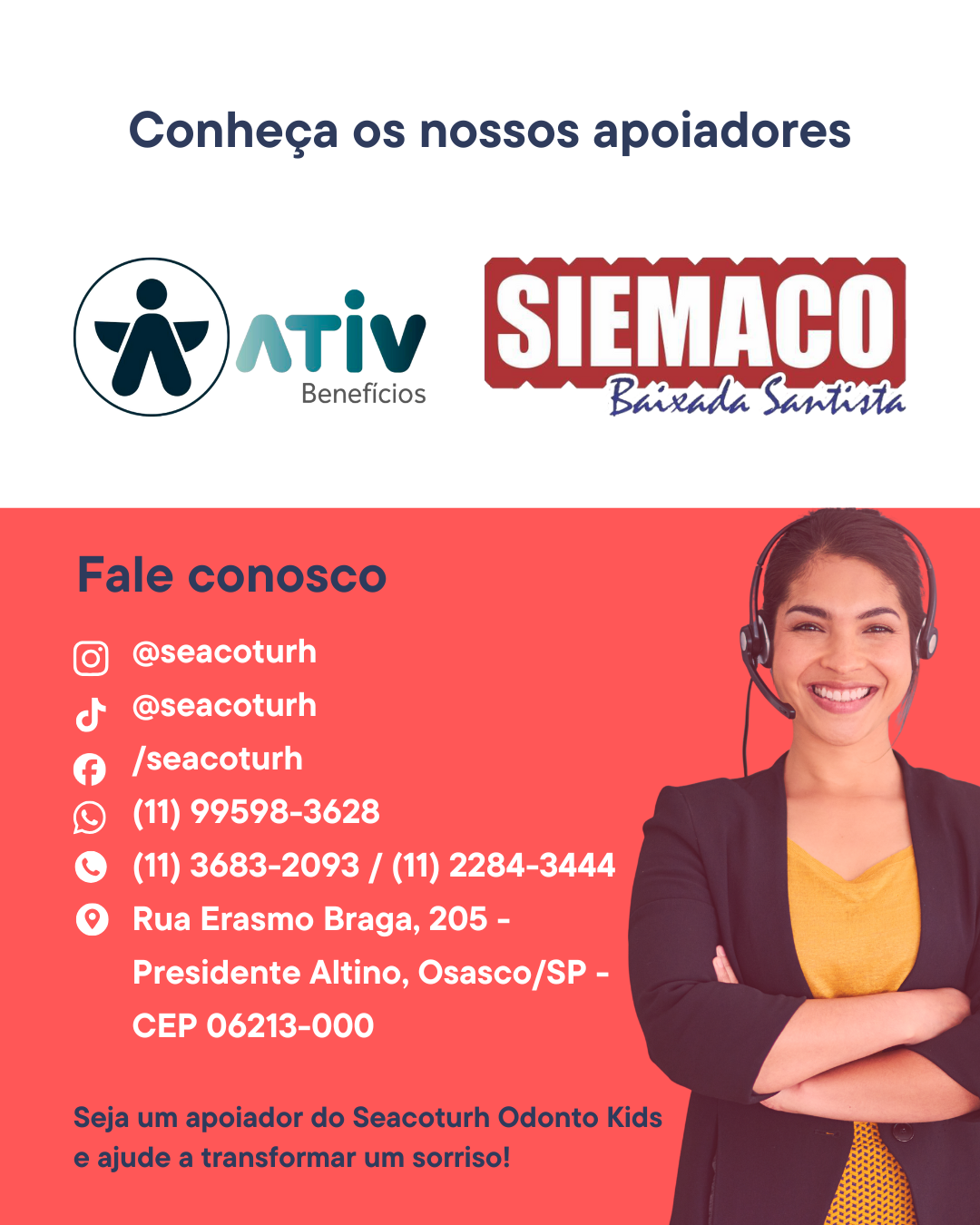 São apoiadores do projeto “SEACOTURH Odonto Kids”: Siemaco Baixada Santista e Ativ Benefícios.